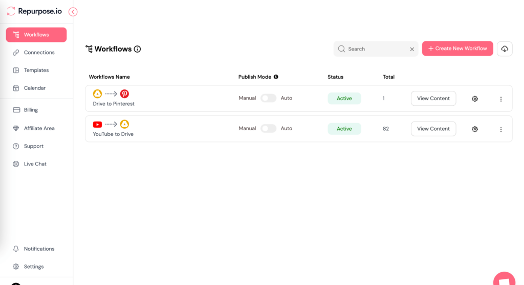 Short-form video automation is an incredibly useful Repurpose.io feature. It automates audio/video content distribution to platforms like YouTube Shorts, IG Reels, and TikTok via Workflows you set up.
