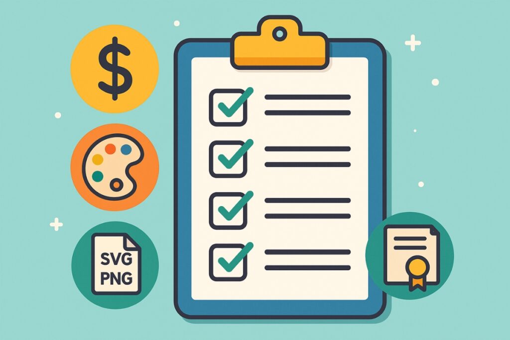 Logos aren’t just for screens — you may want to print them on merch, packaging, or signs. Look for tools that provide scalable vector formats (SVG, EPS) and clear commercial-use rights.